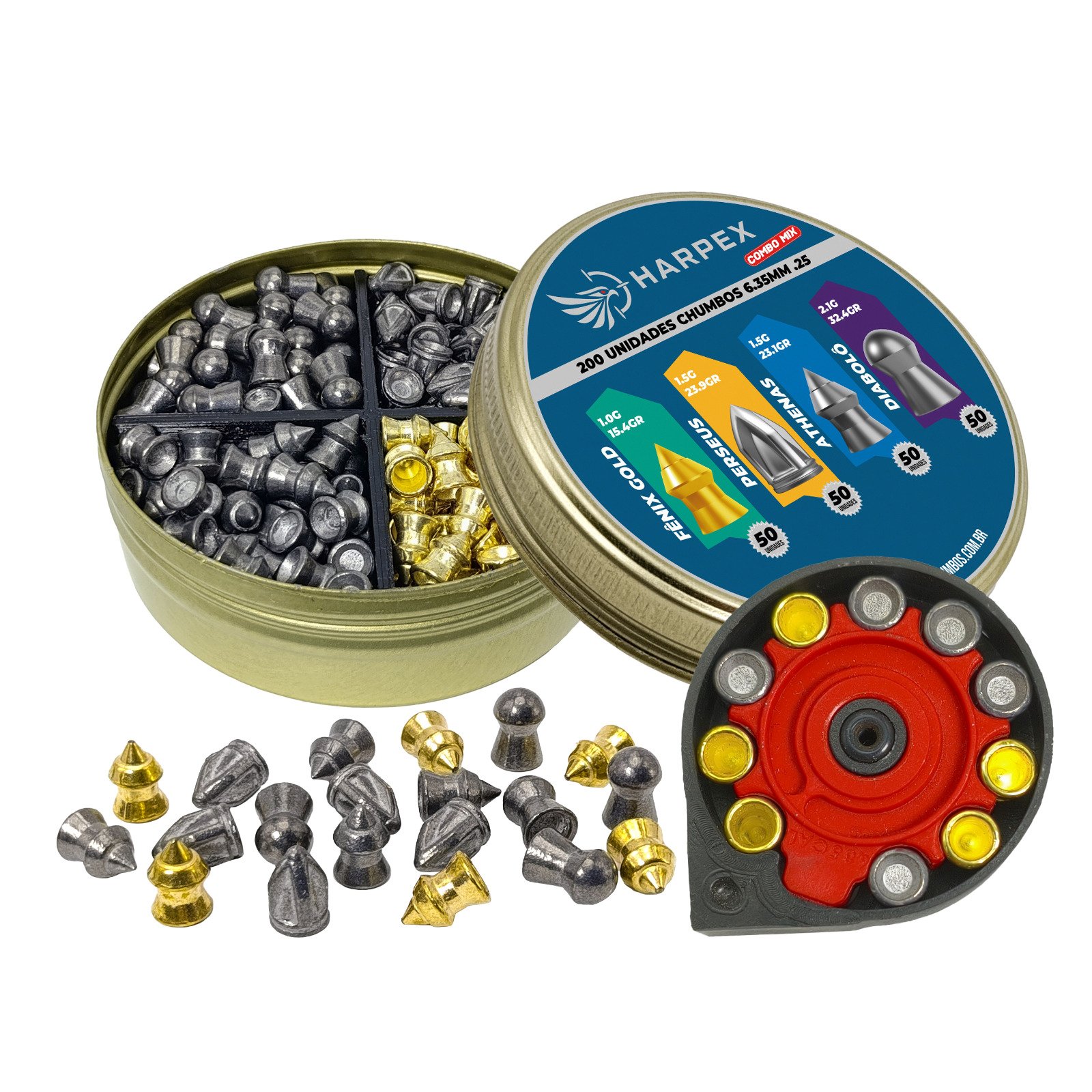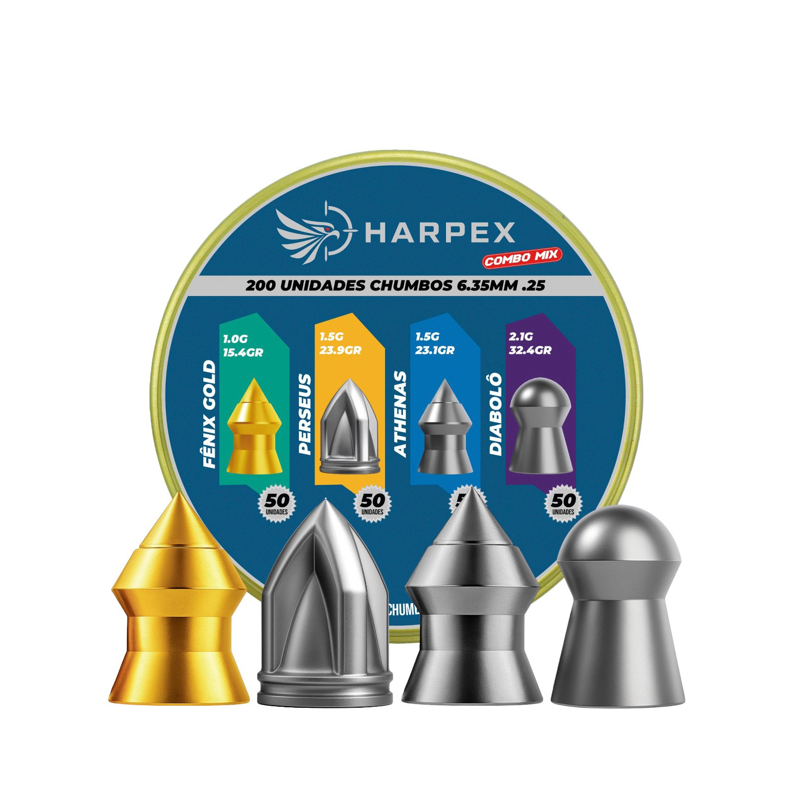6,35mm | Combo Mix – Harpex 6.35mm (.25) – 200 Unidades – Fênix Gold, Perseus, Athenas, Diabolô